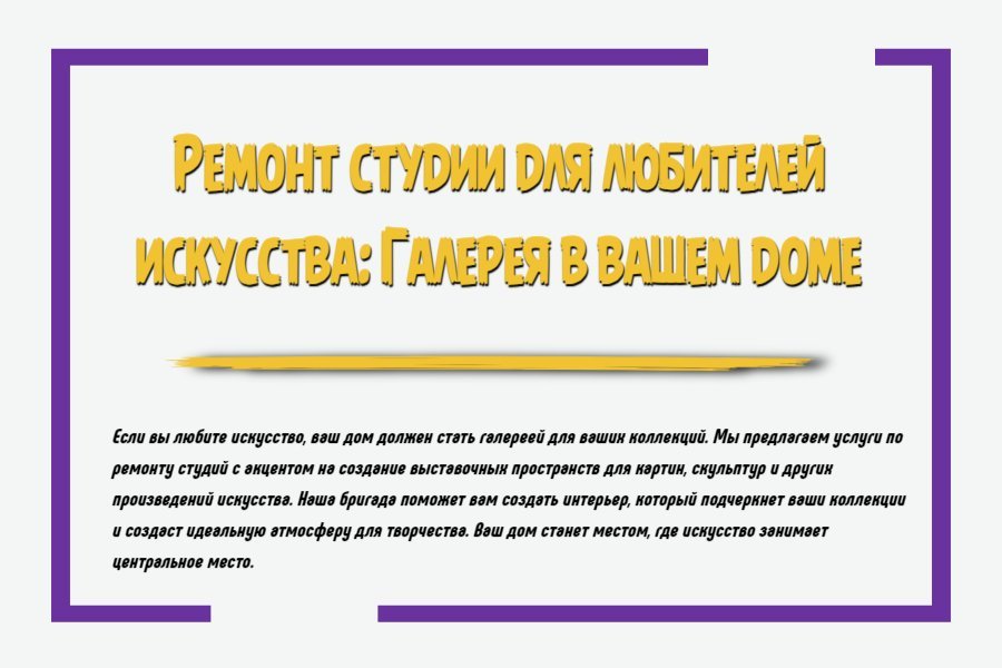 Если вы любите искусство и хотите превратить свою студию в личную галерею, важно создать пространство, где ваши любимые произведения будут органично вписаны в интерьер. Ремонт студии для любителей искусства – это не только создание стильного и функционального пространства, но и возможность выразить свою индивидуальность и эстетический вкус. В этом проекте ключевую роль играют свет, цвет, текстуры и организация пространства, которые помогут подчеркнуть красоту и значимость вашего художественного собрания. Давайте рассмотрим, как провести ремонт студии, чтобы превратить её в настоящую домашнюю галерею.
